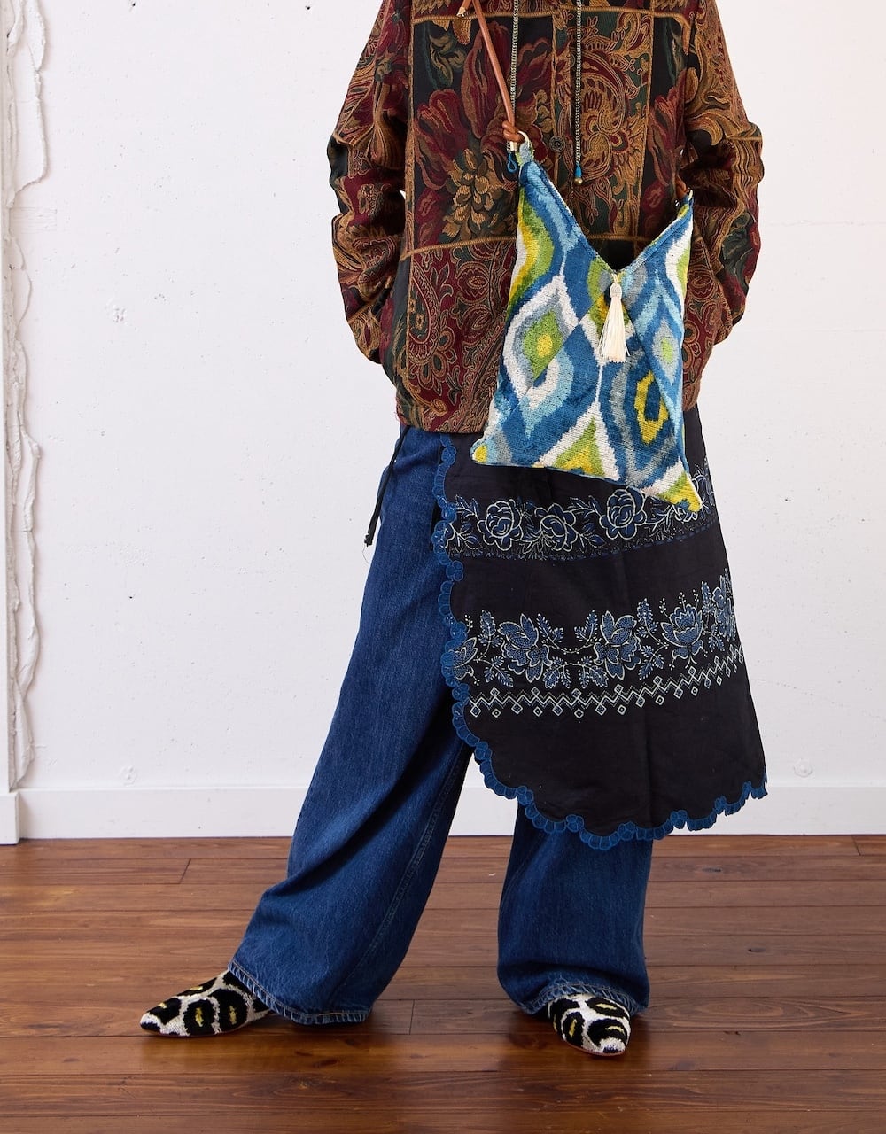 *Silk Ikat velvet ふわふかAZUMABAG *TILE BLUE